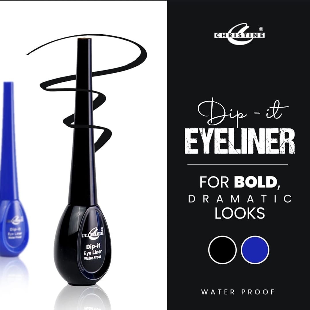 Create striking, defined eyes with Christine Dip Eyeliner, a waterproof formula that ensures precision and all-day wear. Its rich black pigment gives an intense, bold finish that won’t fade, flake, or smudge. The fine-tip applicator allows for smooth, controlled strokes — perfect for creating sleek lines or dramatic wings. Quick-drying and long-lasting, this eyeliner stays flawless even in heat or humidity. Ideal for both everyday wear and special occasions, it adds elegance and depth to every eye look.